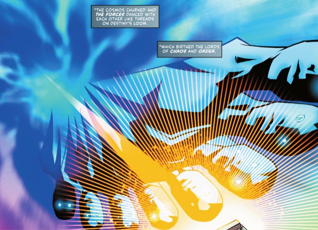 The Lords of Order and the Lords of Chaos are powerful elemental forces and cosmic opposites that represent the concepts of order (or light) and chaos (or darkness.) Created fully developed and knowing no childhoods, they fight each other in a “ceaseless war for dominion over all things.”