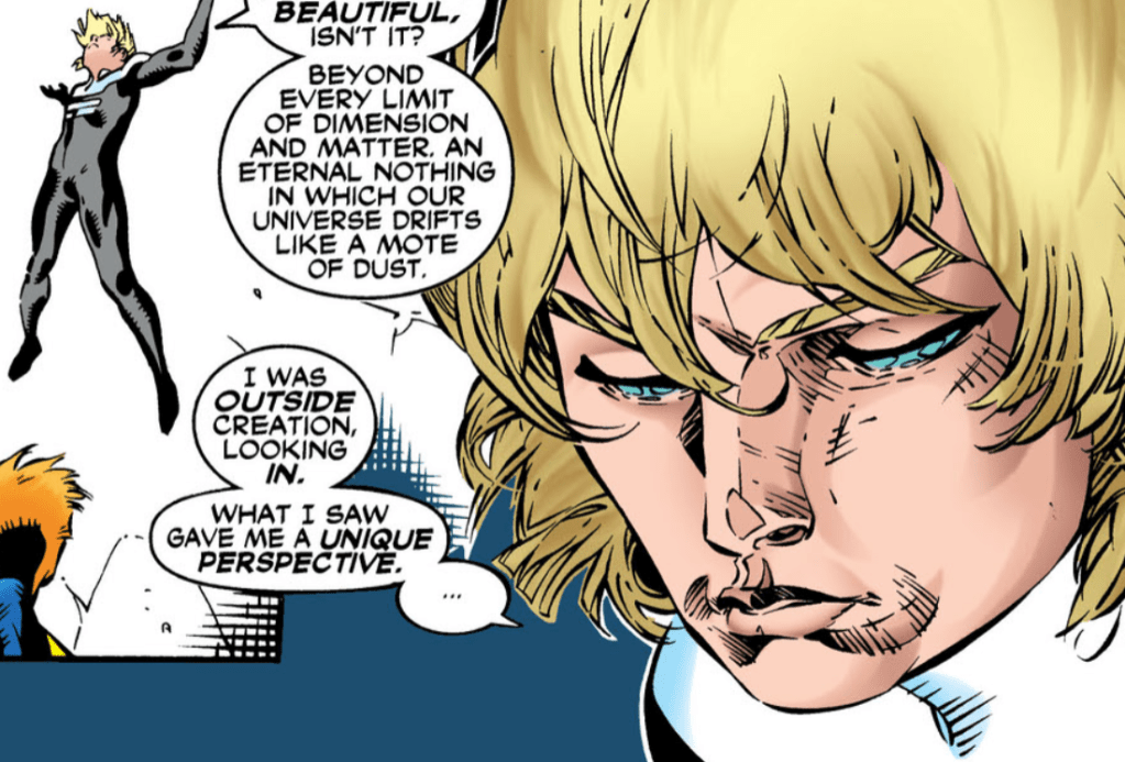 Another observer, Jan Arrah from the 30th century, was thrust back in time to the birth of the Original Multiverse. He watched galaxies form and die for millennia, then began building them himself.