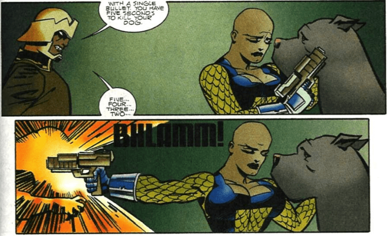 Goodness explained to Darkseid that she did not kill her dog, Mercy, because she had trained it to serve him. He ordered Mercy to kill Goodness and she was forced to defend herself by killing it. He was so impressed that he gave her an orphanage “that needs tending.”