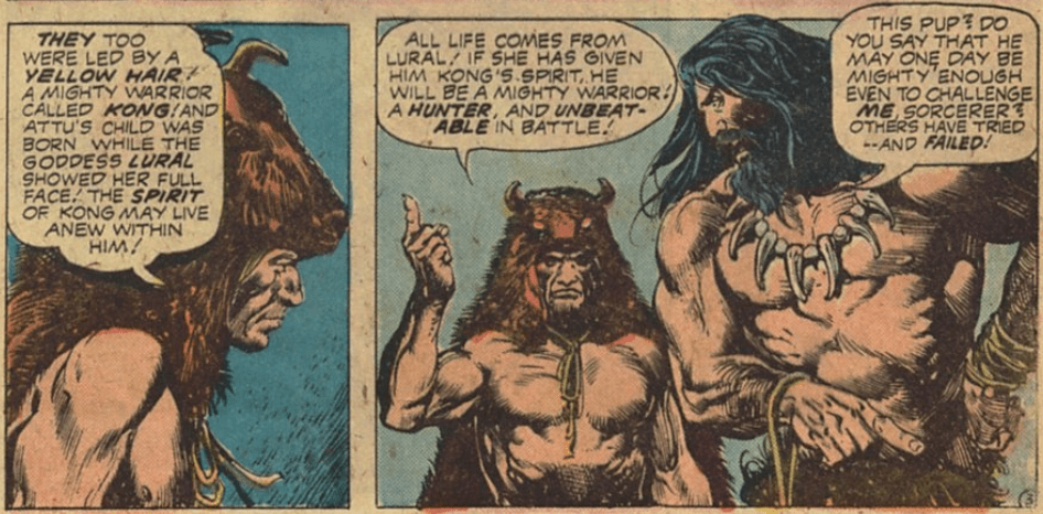 Nevertheless, Attu and her son were cursed and expelled from the tribe. Attu named her son “Kong” after what she had learned from Trog.