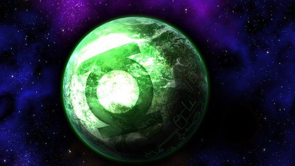 Mogo is identified by a band of foliage that circles the planet and displays the Green Lantern symbol. Mogo was responsible at one time for guiding rings to new Lanterns after their hosts died.