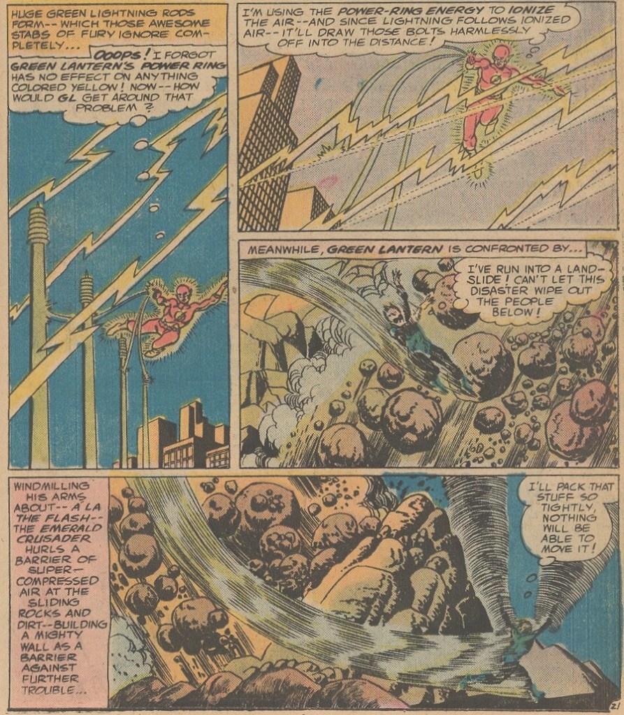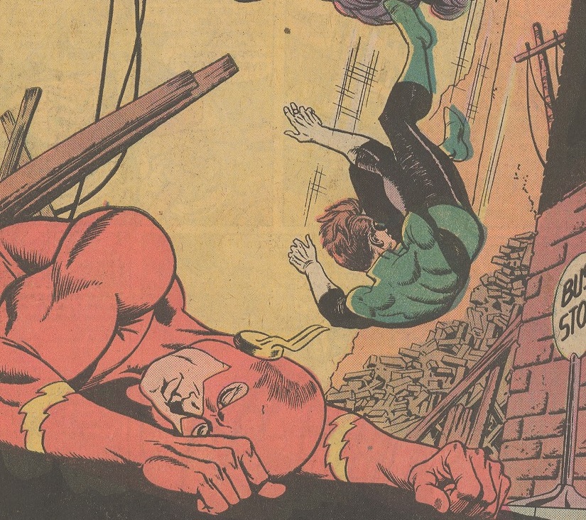 As The Flash and Green Lantern are saving the citizens of Coast City, they both discover two crooks leaving a building. Then they’re shocked as their powers are useless with The Flash’s feet feeling like lead and Green Lantern’s ring suddenly drained of all power.
