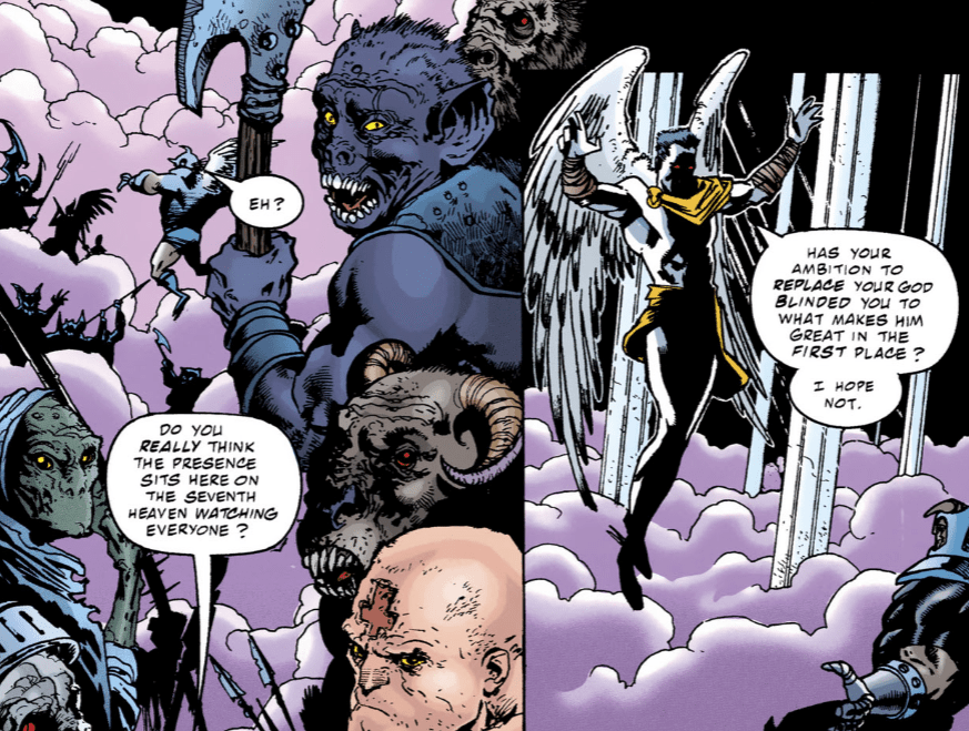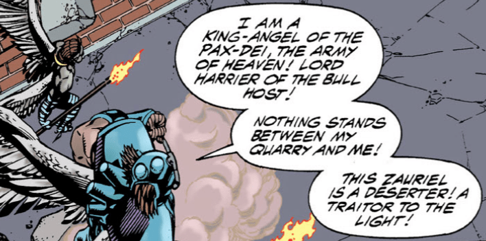 An Angel of the Eagle-Host, Zauriel, became aware of Asmodel’s plan, but with no confidence that it would succeed, appeared before the King-Angels and asked to go to Earth.