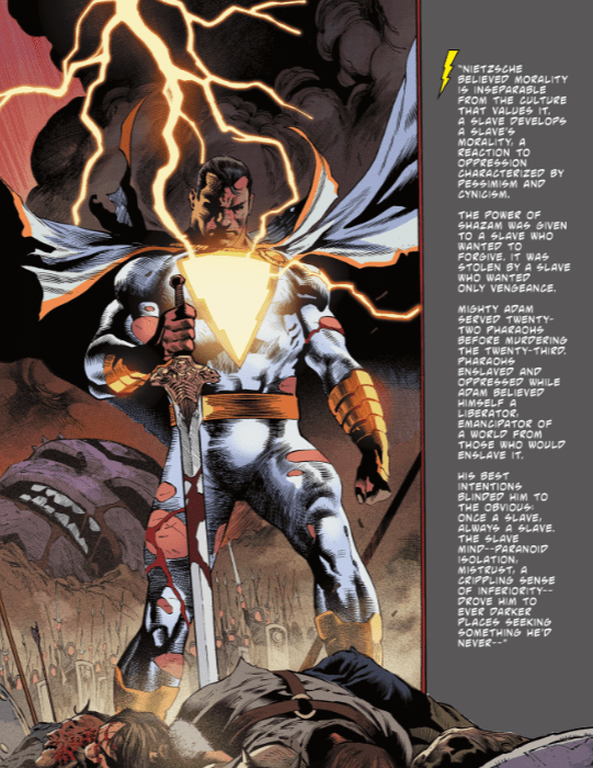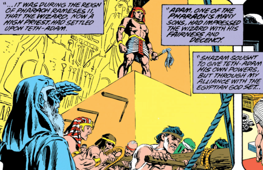 Another version of the story is that Teth-Adam’s father died in a similar flood on the Nile. He and his family were enslaved by Ibac, the terrible ruler of Kandaq, and were tortured.