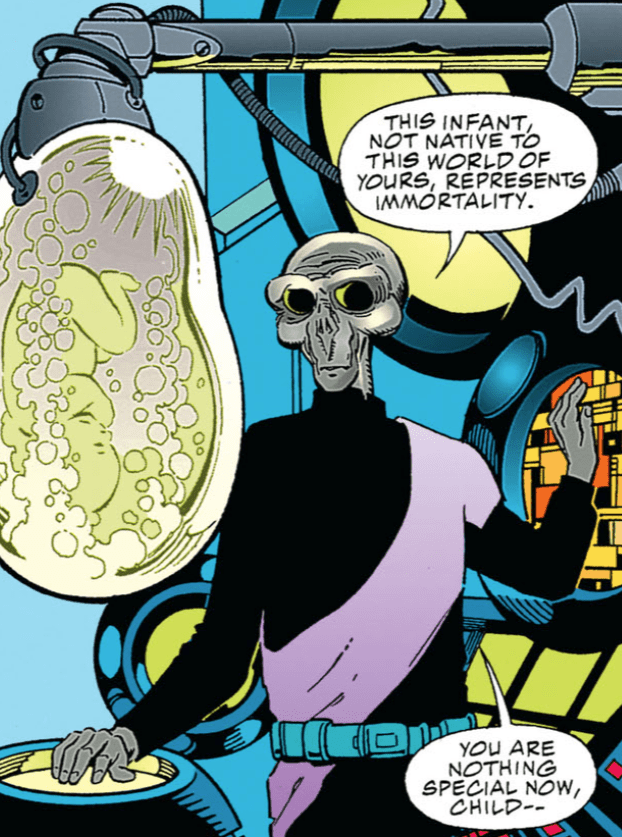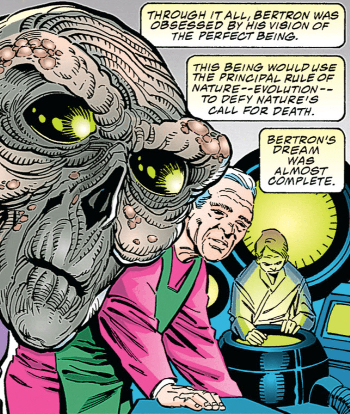 The infant, and many subsequent versions, did not survive the harsh environment of Krypton, but Bertron persisted for at least thirty years, cloning a new infant every day from the remains of the previous one.