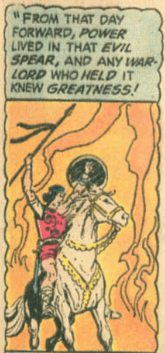 Suddenly, the sky grew dark! Thunder rumbled, and a strong wind blew, snatching the spear from his hands.