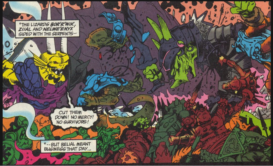 A million demons fell that day, ripped beyond all hope of regeneration. But two survived – the demon king and the serpent queen! Glaring their hatred they circled each other, preparing to attack — but then — a moment of true magic!