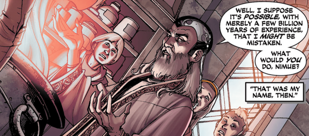 You’ll recall that Nimue Inwudu was the younger sister of Morgain le Fey. She was adept at sorcery and trained with Merlin.