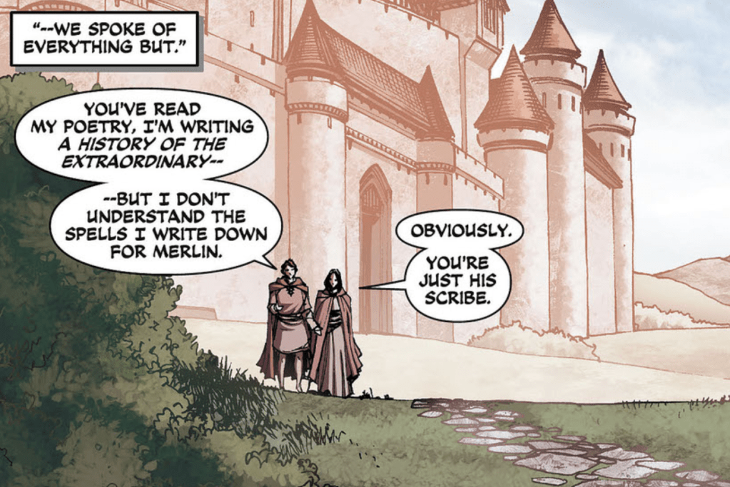 When the demon grew jealous of their relationship, Nimue became his lover in an attempt to control him and prevent a rampage.