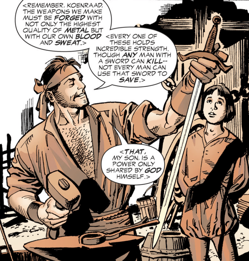 In the late 14th century, Niklas von Grimm was the most prominent blacksmith in Lubeck. He was a strong, hard-working and loving man and an artist who worked in metal and stone. To von Grimm was born a son, Koenraad, who was the reincarnation of Prince Khufu.