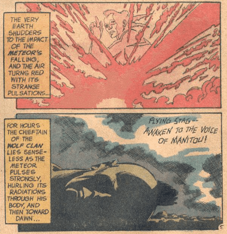 Using a fragment from the meteor, Flying Stag was granted incredible powers and became the hero known as… Super-Chief.