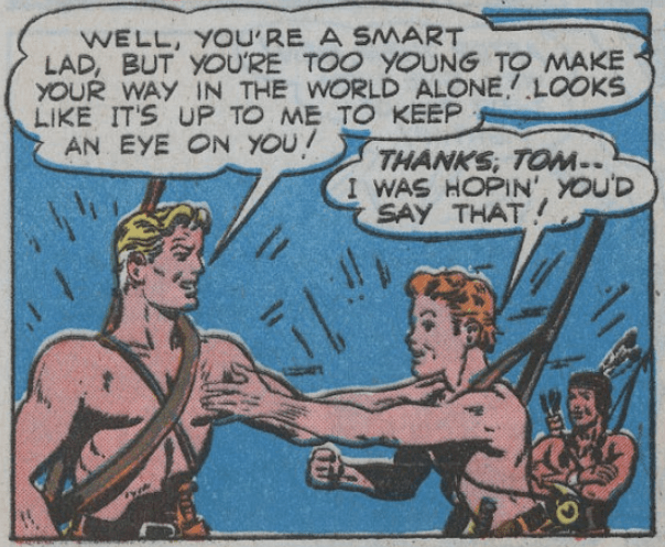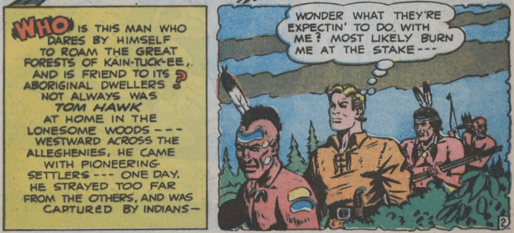 The time — when our land was young! The place — the great unexplored continent of North America! The beat of war drums echoes warningly through field and forest — primitive man and ruthless nature turn fierce and hostile faces on the growing colonies — and in the heat of the struggle, frontiersmen Tom Hawk and Dan Hunter forge from bonds of friendship…