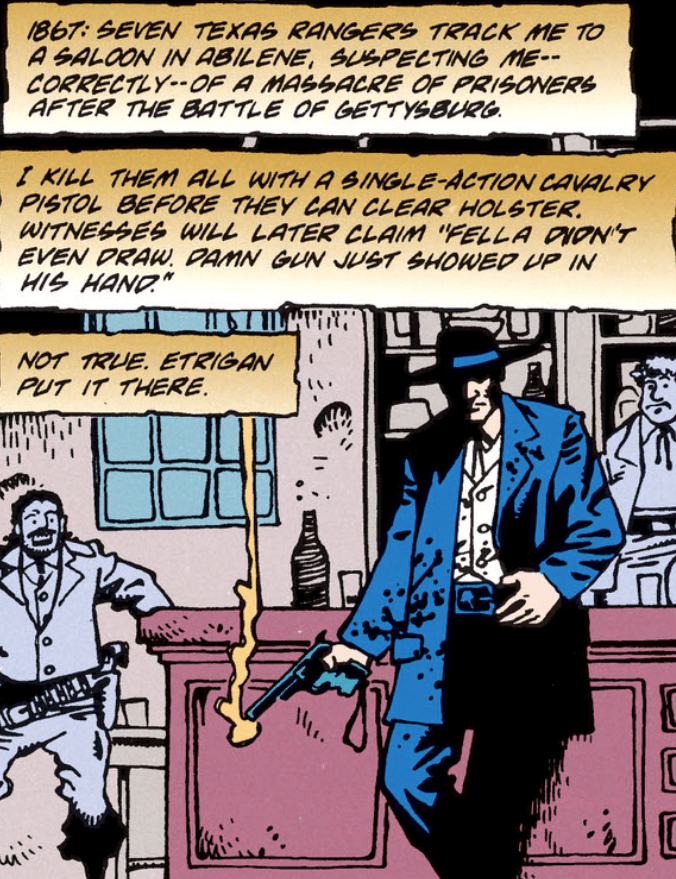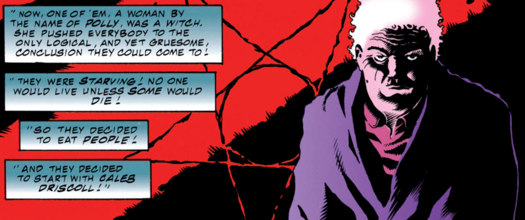 I move an Indian tribe onto barren land and sell them blankets soaked in smallpox for when the winter comes. Etrigan is there to drink the blood of their dying gods.