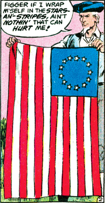 He was beaten and left to die, then awoke to find a strange presence; again, the Sprit of America…