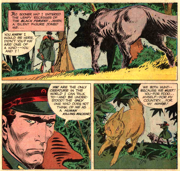 Hans took no joy in his duty and hated being called, a “killing machine” when he returned from missions. He was a lonely man with only one friend, a black wolf who hunted with him..