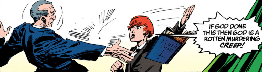 As a child, Jim Corrigan’s father had the fear of God beaten into him by his mother and grew up to be the Reverend Jebediah Corrigan. Jim grew up on a farm while his father was “on the road with his tent show.” The child of the family’s housekeeper, Rafe, was his best friend.