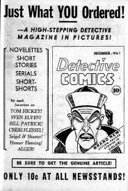The December issue of New Comics (#11) on sale November 30, included a house ad for Detective Comics; however, it was delayed from its original December 1936 cover date.