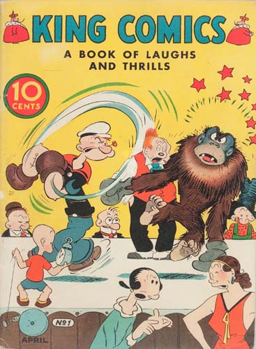 In 1936, other publishers were jumping on the comic book bandwagon. Dell released Popular Comics in February, and David McKay released King Comics in May. The former included reprints of such Sunday strips as Dick Tracy, Little Orphan Annie, and Terry & the Pirates. The latter featured characters from Popeye on the cover.