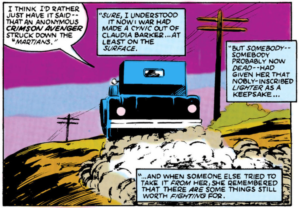 At the party, a gang of ruthless thieves took advantage of the airing of Orson Welles’s War or the Worlds radio broadcast, dressed in alien costumes, and robbed the estate, killing Mr. Vanglider and Lee’s flame, Claudia Barker.