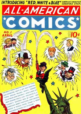 All-American Comics contained newspaper reprints, puzzle pages, and original pages. Strips included Scribbly , Hop Harrigan, and Red, White & Blue.