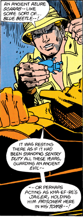 Behold me, man of the future – and heed my words! The power of our sacred scarab has brought you here before us that you might receive a most wondrous gift –! You are a man of courage and honor, Daniel Garrett – and the spinning fates have chosen you as the champion of all mankind! Go ye forth and do battle against the forces of evil wherever you may find them—for when you speak the holy words, yours shall be the power to banish evil from the earth for all time –