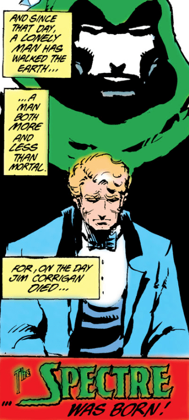 Corrigan returned to Earth and appeared in the warehouse where Benson held Winston. He killed the mobster, but Winston had been shot. In a bargain to save her life, he was bound with the Spectre Force and destined to roam on a mission to destroy crime and uphold justice.