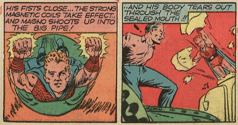 Tom Dalton gained amazing powers when he was electrocuted by 10,000 D.C. volts, then shocked back to life by an equal current of A.C. volts. He secretly fought crime as, “Magno.”